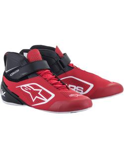 The Alpinestars Tech-1 K V2 kart shoe is developed to withstand the stresses of kart racing with a nubuck and microfiber upper for durability and support, a new anatomical design for improved forefoot profiling, and an asymmetric lacing system for a more progressive closure. Synthetic perforated panels placed in the tongue, heel, and side panels offer excellent ventilation. The Alpinestars Tech 1-K V2 karting shoe also features an ultra-thin Formula 1 specification sole utilizing Alpinestars' exclusive rubber compound for pedal sensitivity and grip in both wet and dry conditions. External toe reinforcements on both sides for additional abrasion resistance and protection. Available in black/white, black/white/red, black/orange/white, blue/white, and red/white color combinations. Sizes: 2.5-13US (No size 3,4,5.5, and 6.5).