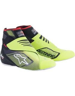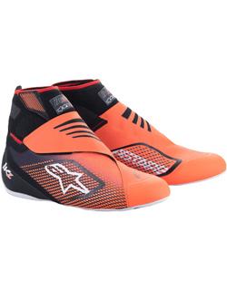 The Alpinestars Tech 1-KZ V2 shoe is Alpinestars' flagship karting shoe and this latest V2 model has been completely remodeled to be the lightest and most comfortable kart boots available. Constructed using state-of-the-art flat knitting technology for an upper that perfectly adapts to your foot for the ultimate fit and feel. The dual ankle strap and hidden instep lacing system provide a close and secure fit for optimal support and control. The Alpinestars Tech-1 KZ V2 karting shoe utilizes an advanced seamless, thermo-welded construction consisting of ultra-thin PU film and textile to reduce weight without compromising the high levels of comfort. Strategically placed laser-cut ventilation holes and textile side panels let the boot breathe to regulate the temperature of the foot and reduce perspiration for comfort even in the most intense race conditions. Internally the shoe features toe reinforcement areas which provide additional abrasion resistance and protection for the toes. The Alpinestars Tech-1 KZ V2 shoe has a very precise fit that envelopes the foot providing excellent support and control. A lightweight, one-piece heel and insole construction has been designed to enhance heel lockdown and improve comfort while driving. An F1-derived thin rubber sole with a textured tread pattern delivers the very best levels of feel, sensitivity, and grip on the pedals. Available in black/white/gold, black/yellow fluo, black/enamel blue/yellow fluo, and black/orange fluo color combinations. Sizes: 2.5-13US (No size 3,4,5.5, and 6.5).