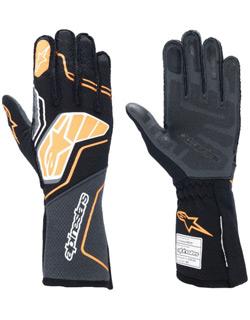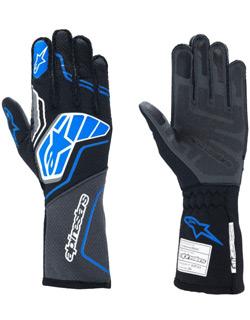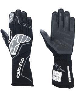The Alpinestars Tech-1 ZX V4 racing glove, updated design for 2024, is Alpinestars' professional racing glove featuring inside seams on the thumb and outside seams on the other four fingers for optimum levels of comfort and feel; the inside seams on the thumb offers excellent levels of feel on the multiple push-buttons of the steering wheel, while the external seams provide excellent levels of comfort and avoid any pressure points from developing on the hands while driving. Developed with leading drivers in F1 and Endurance, the Tech-1 ZX V4 glove offers exceptional protection while significantly improving breathability with a new dual-sided honeycomb two-layer fabric. Alpinestars new generation of auto gloves provide nearly a 20% improvement in heat transmission. This has been achieved while still offering the exceptional combination of fit, feel and grip for which our gloves are known. The Alpinestars Tech-1 ZX V4 glove is equipped with Alpinestars open cuff design with a 180 degree elasticated wrist for easy entry and a secure fit. Other neat design touches include an inner palm treated with latex to minimize micro slipping while holding the wheel and a silicone surface for improved flexibility and control. There is also a touch compatible print on thumb and index fingers for using mobile devices while at the track. FIA 8856-2018 and SFI 3.3/5 Approved. Available in black/anthracite, black/red, black/blue, black/white/red, black/orange fluo, and tar gray/black/yellow fluo color combinations. Sizes: S-XXL.