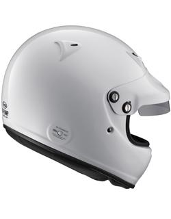 The New Arai GP-5W auto racing helmet, SA2020, features a wider eye-port (90mm)and ventilation specific to closed cockpit race cars. The updated Snell 2020 requirements does not change the previous GP-5W design with the new GP-5W retaining exactly all of it's previous looks and features, among them the 5 point upper ventilation system and slightly modified shield. Constructed of Arai's exclusive PB-CLC (Peripherally Belted Complex Laminate Construction) shell technology, which provides superior impact energy management properties, utilizing proprietary cutting edge fiberglass based materials and construction techniques, while maintaining low weight without the use of trendy materials which may not be properly suited for use in helmet applications. The Arai GP-5W SA2020 helmet's upper ventilation remains unchanged from the GP-5W SA2015 model, incorporating 3 intake scoops in front and two delta exhaust outlets in the rear. The interior fit is typical Arai, benefiting from years of research and refinement, resulting in a helmet that more closely matches the shape of the human head. Such a close fit allows for the smallest possible helmet to be worn, while still being comfortable. Combined with incredible fit and comfort, Arai concentrates on balance and center of gravity. The GP-5W SA2020 helmet represents the result of Arai's pursuit of a comprehensive package, providing comfort, function in an attractive package, masking the hidden energy management system within. Because after all, the thing to remember is that a helmet is worn to take the abuse in the event of an impact and if necessary be destroyed in that process. Snell SA2020 Approved and FIA 8859-2015 Approved M6 Hans fixation facility. Available in white. Sizes: XS-XL.