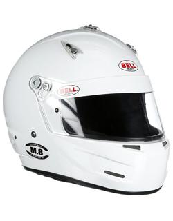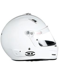 The Bell M.8 helmet is the next evolution in Bell's legendary M series design concept (M2, M3, M.4) incorporating traditional styling, enhanced visibility and versatile features allowing the helmet to be used in all forms of racing. The Bell M.8 provides outstanding comfort and features including a lightweight composite shell, Comfort-Plus interior, superior ventilation with manual lever air intake vents and a large eye opening. The Bell M.8 is a great choice for racers who want a lightweight, multi-purpose helmet with a wider field of vision (especially for those who wear eye glasses) and updated Bell styling and performance. Bell's lightweight composite shell plus E-Max Plus technology distributes impacts and protects the whole head. In addition, the Bell M.8 features Bell's new SRV friction shield system. This new system has a slide mechanism that allows the driver to adjust the tension on the shield allowing for multiple opening positions. When properly adjusted and in the locked position, the SRV system helps reduce the possibility of the shield opening during an impact. Pre-drilled for HANS posts or equivalent HNR devices. Snell SA2025 certified. Available in white or matt black. Sizes: XXS-4XL.
