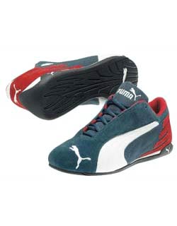 The PUMA Repli Cat Low shoe is the ideal product for the race sport enthusiast that makes a lifestyle statement at the same time. As a take-down version of professional footwear, this shoe is a must for every Motorsport activity, no matter if you perform as a driver or spectator. The PUMA Repli Cat Low shoe is a low-profile race shoe with a lot of fashion. Wear this style for running or just going out with premium ultra-light suede with canvas panels for breathability. Super comfortable cushioned footbed with an EVA wedge midsole. NON-FIREPROOF. Available in navy/white/blue, black/white/grey, slate/white/red, white/white/red, and red/white/black color combinations (toe color/stripe color/heel color). Sizes: 36 - 46.
