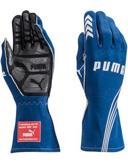 The PUMA Podio glove represents an out-seamed version of the Furio glove and incorporates the new graphic design features used by the Ferrari F1 pilots. The PUMA Podio glove represents a fusion of the Avanti and Furio gloves with an outside-seamed presentation combining all the latest technology available for the Motorsport professional. Designed for maximum grip and comfort, that Podio glove focuses on all contact points between the driver's hand and the steering wheel. Outside stitched and pre-formed sculptured finger construction on the palm side of the gloves complement the tactile rubberized pads strategically placed throughout the palm and finger areas of the glove. The Podio glove features a fully encompassing sculptured barrier of 180-gram knit Nomex covering both the back of the hand and throughout the interior of the hand, fingers, and palm. Ergonomically positioned rubberized tactile pads provide hardwearing and maximum grip within the palm area. FIA 8856-2000 approved. Available in red, blue, black, and white. Sizes: 8-12.