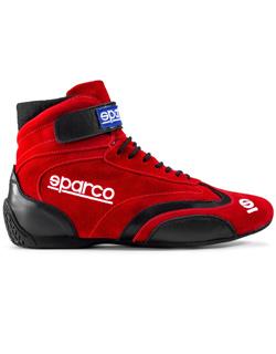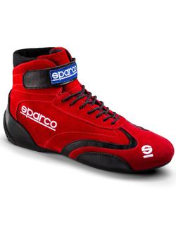 The Sparco Top racing shoe brings back design and styling from Sparco's best-selling shoes from the past. The high-top design provides excellent ankle support, aided by a padded tongue and rear ankle bellows for high mobility and comfort levels. The Sparco Top race shoe is constructed from high-quality suede with leather patches to protect areas prone to wear. A traditional lacing system and a single Velcro strap provide a secure fit. The sole is made from a thin molded rubber that is resistant to fuel and oil and provides superb grip with dexterity on the pedals. The Sparco Top shoe features a wide Velcro strap for greater ankle support and guaranteed fit and hold. A balance point on the heel improves driving sensitivity. FIA 8856-2018 Approved. Available in black, blue, and red colorways. Sizes: 37-48.