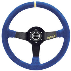 Sparco L550 (Monza)steering wheel is a dished style wheel with 3 anodized spokes in blue, suited for all types of driving: rally, track or road. Complete with horn button. Available in black suede/blue center, or black leather/silver center. Diameter: 350mm, Dish: 63mm