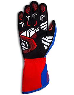 The Sparco RECORD karting glove features a special elasticated jersey fabric for maximum breathability and improved fit. The RECORD kart glove has stylish sublimated graphics that stand out with bold color combinations printed to a preformed shaped body for improved ergonomics, reduced surface tension, and total weight reduction. The Sparco RECORD features external seams to insure minimum internal pressure points, while additional padding in the carpal region help smooth numbness inducing vibrations. The smooth textured palm is engineered to prevent bunching, and is spatially printed with high-grip silicone that mproved breathability and grip. Available in blue/red, black/grey, black/yellow, and black/red color combinations. Sizes: 7-13.
