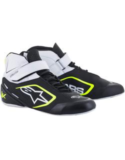 The Alpinestars Tech-1 K V2 kart shoe is developed to withstand the stresses of kart racing with a nubuck and microfiber upper for durability and support, a new anatomical design for improved forefoot profiling, and an asymmetric lacing system for a more progressive closure. Synthetic perforated panels placed in the tongue, heel, and side panels offer excellent ventilation. The Alpinestars Tech 1-K V2 karting shoe also features an ultra-thin Formula 1 specification sole utilizing Alpinestars' exclusive rubber compound for pedal sensitivity and grip in both wet and dry conditions. External toe reinforcements on both sides for additional abrasion resistance and protection. Available in black/white, black/white/red, black/orange/white, blue/white, and red/white color combinations. Sizes: 2.5-13US (No size 3,4,5.5, and 6.5).
