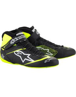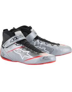 The Alpinestars Tech-1 Z V3 racing shoe offers a blend of superior comfort and precision engineering. Crafted with a Bovine leather upper and a thermo-formed heel cup, they provide secure heel lockdown and exceptional forefoot comfort. The Tech-1 Z V3 racing shoes deliver exceptional pedal feel, sensitivity, and grip, making them a perfect choice for professional drivers. The AlpinestarsTech-1 Z V3 race shoe for 2024 features a new traditional knitted stretch tongue and heel pull tab to ensure easy entry replacing the elasticized "sock" type collar featured on the Tech-1 Z V2 model. The rubber outsole features an asymmetric tread for maximum grip, and it's water-repelling and oil-resistant, ensuring top-notch traction. The main upper material, lightweight Kangaroo leather, offers a superb fit. The Achilles zone construction employs a soft, cushioned knit without seams, enhancing driver comfort. The Alpinestars Tech-1 V3 shoe features a dual closure system that combines a speed lacing system and adjustable ankle strap for a personalized fit and secure closure. Additionally, they come with standard laces in the box. Features include strategically positioned perforation zones, a revised flat wire support system, a softer heel cushioning pad, para-paramedic tubular lining construction for heat resistance and comfort, and a Formula 1-derived thin rubber outsole with a textured pattern. FIA 8856-2018 and SFI 3.3/5 Approved. Available in black/silver, black/yellow fluo, black/red, white/black, yellow fluo/black, and dark silver/black/red color combinations. Sizes: 5-13US (excluding sizes: 5.5,6.5,11.5,12.5US).