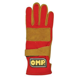 The OMP Karting Kart glove is a medium-gauntlet glove with a nylon back, brown suede palm and knuckle protection, and a Velcro strap. Available in red, blue, and black. Sizes: XS to XL and children's sizes 4 (4-6 years) and 5 (7-9 years). Note: Clearance sale pricing of $55.00 for remaining sizes and colors only - see 'Choose a Size' drop-down for size and color availability. Sale is final on all clearance items - no returns, exchanges, or warranty.