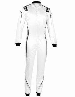 The Sparco PRIME auto racing suit was developed for the McLaren Formula One team and is one of the world's lightest FIA 8856-2018 approved racing suits. The Prime race suit has unparalleled technological features that were created in the Sparco R&D laboratories. The project involved optimizing every single detail in terms of material and construction. This includes an ultra-slim zipper, soft seamless Nomex/Vicosa wrists and ankle cuffs, the neck and shoulder pads were further reduced, a thinner thread was used, and stitching was flattened even more. The Sparco Prime race suit features a 3-layer construction of proprietary Sparco technology. The third outer layer is a double-faced mesh made from the original DuPont Nomex Comfort and woven using the Kompact system. The material contains a high percentage of antistatic fibers, which provide extremely effective antistatic properties and breathability. The suit weighs only 240/270 g per square meter. The Sparco Prime suit also features pre-curved arms and legs and strategic stretch panels, giving the suit unbelievable comfort and fit. FIA 8856-2018 and SFI 3.2A/5 Approved. Available in white, black, or black/yellow colors. Sizes: 48-66.