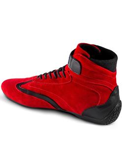 The Sparco Top racing shoe brings back design and styling from Sparco's best-selling shoes from the past. The high-top design provides excellent ankle support, aided by a padded tongue and rear ankle bellows for high mobility and comfort levels. The Sparco Top race shoe is constructed from high-quality suede with leather patches to protect areas prone to wear. A traditional lacing system and a single Velcro strap provide a secure fit. The sole is made from a thin molded rubber that is resistant to fuel and oil and provides superb grip with dexterity on the pedals. The Sparco Top shoe features a wide Velcro strap for greater ankle support and guaranteed fit and hold. A balance point on the heel improves driving sensitivity. FIA 8856-2018 Approved. Available in black, blue, and red colorways. Sizes: 37-48.