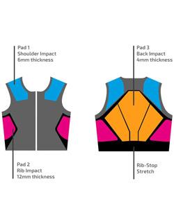 The Sparco SJ Pro K-3 karting protective vest has been designed for a driver who wants to ensure high shock absorption and anti-vibration protection without sacrificing comfort and mobility. Anti-vibration and anti-shock padding are used in the rib, shoulder, and back areas for optimum protection. The Sparco SJ Pro K-3 vest's outer fabric is breathable and abrasion-resistant. The padding on the back is pre-formed with added grooves to allow flexibility while driving. The material used on the jacket is breathable and anti-bacterial to help prevent perspiration and offers excellent anti-abrasion properties. A full-length zip closure makes the kart jacket easy to wear and remove. Suitable for indoor and outdoor use. Available in an attractive black and gray chevron pattern. Sizes: 120-140 Child and XS-XL Adult. SIZES: