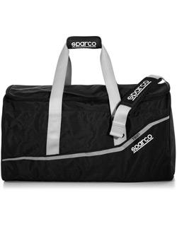 The Sparco Trip bag is the ultimate duffel bag. The Trip features a large-capacity top-zip compartment made from a lightweight yet durable material. It is perfect for taking your gear to the racetrack or a weekend getaway. Its sleek, contemporary look with black fabric and silver accent striping is combined with both a shoulder strap and a handle for easy carrying. Available in black/silver color only. Dimensions: 15'x14"x26"