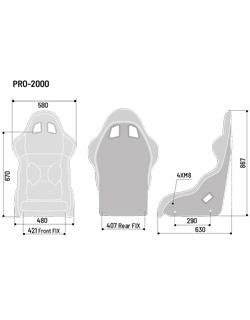 The shoulder harness openings of the Pro 2000 QRT have been raised for more appropriate shoulder harness placement, and the seating area around the midsection has been reshaped for less interference compared to the original Pro 2000. FIA 8855-1999 Approved. Side and base mount capability. Available in black fire-retardant fabric.